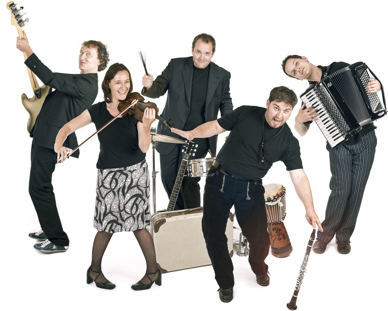 Mit Kla- rinette, Geige, Akkordeon, Bass und Perkussion erzählt das
