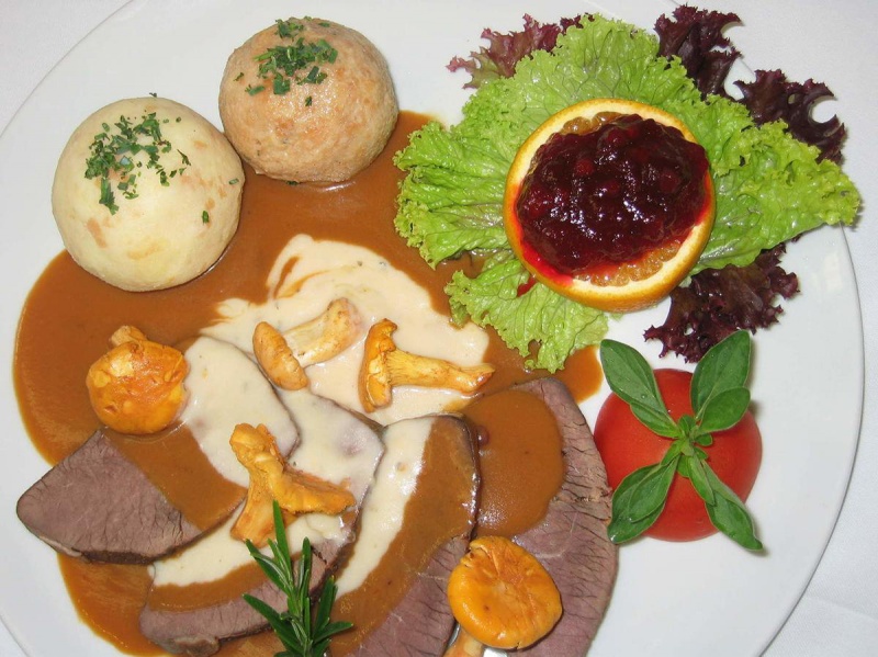 Verschiedene Gerichte vom frisch erlegten Jung-Hirsch aus eigenem Gehege sowie Wurstspezialitäten und Schinken vom Hirsch zur Brotzeit oder auch zum Mitnehmen!