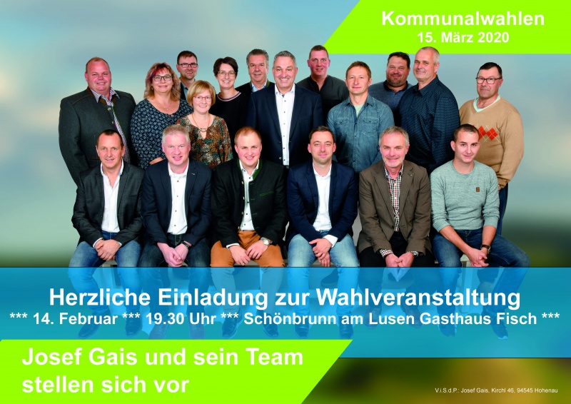 Vorstellung des Bürgermeisterkandidaten, Vorstellung der Gemeinderatskandidaten, Vorstellung des Zukunftsprogrammes, Wie wähle ich richtig, Diskussion