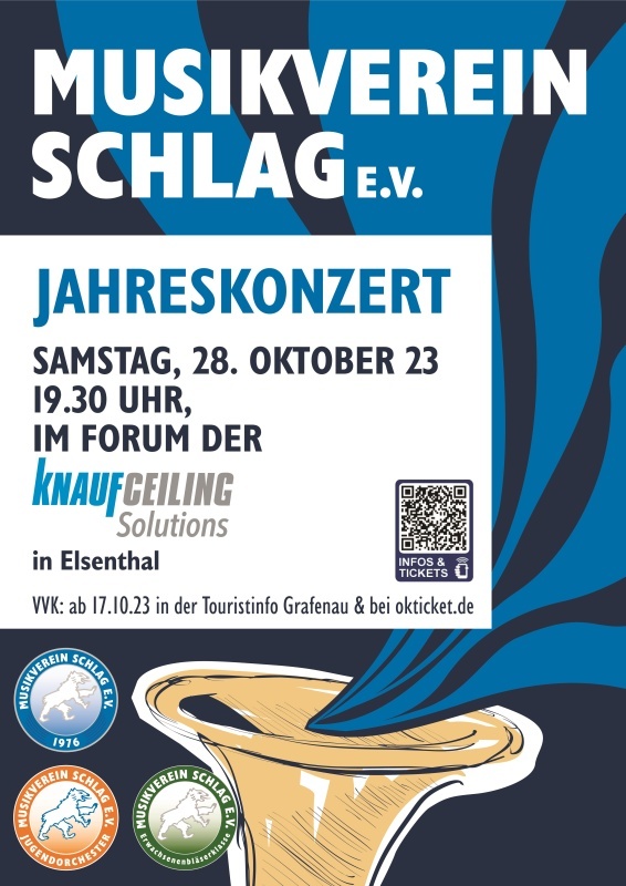 Am Samstag, den 28. Oktober, findet im Forum der Knauf Ceiling Solutions GmbH & Co. KG das Jahreskonzert des Musikvereins Schlag e.V. mit seinen Gruppen statt.