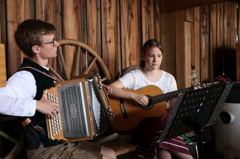 Start der 2024er Konzertreihe "Klingende Juwele im Passauer Land" mit einem Konzert der Volksmusikklasse in historischer Kulisse im Museumsdorf in Tittling im Gasthaus "Mühlshiasl" mit einem bunten, aber authentischen Volksmusikprogramm.