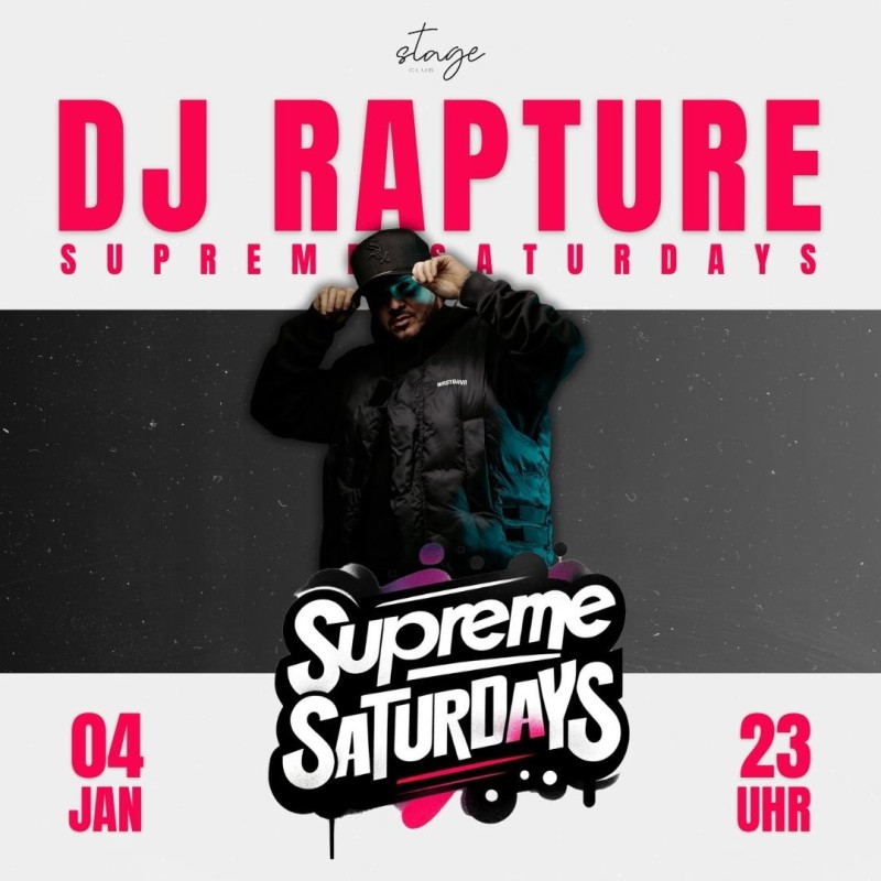 Am Samstag, den 04. Januar 2024, verwandelt sich unser Stage in Deggendorf in den Hotspot fur alle Liebhaber von Black Music und Hip-Hop. DJ Rapture, der international gefeierte DJ, Produzent und Songwriter, bringt euch die besten Beats - von den aktuellsten Hits bis hin zu den heißesten Tracks der Szene.
