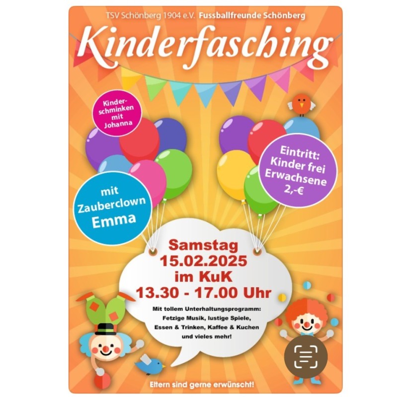 Der TSV Schönberg 1904 e.V. und die Fußballfreunde Schönberg laden alle Kinder und Eltern herzlich zum bunten Kinderfasching ein! 🌈