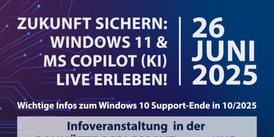 Nutzen Sie die Gelegenheit, neue Impulse für Ihr Unternehmen zu gewinnen und unsere Experten persönlich kennenzulernen. Wir zeigen Ihnen, wie Sie den Umstieg auf Windows 11 effizient gestalten – und wie moderne KI-Technologie wie Microsoft Copilot Ihren Arbeitsalltag revolutionieren kann.