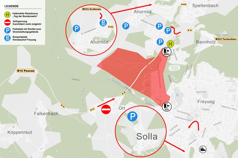 Der Busparkplatz selbst befindet sich anschließend am Kreisbauhof Freyung, Kreuzstraße 4, 94078 Freyung.