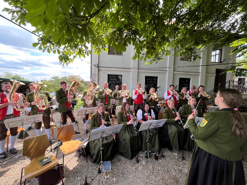 Bei schönem Wetter spielen die Musikerinnen und Musiker vor dem Salettl, bei Regen steht das Innere des Salettls mit zahlreichen Sitzplätzen zur Verfügung. Die Gäste erwartet ein abwechslungsreiches Programm von traditioneller bis moderner Blasmusik.