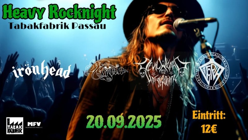Die Tabakfabrik Passau wird am Samstag, 20. September 2025 zur Bühne für ein lautes und energiegeladenes Rock- und Metal-Festival. Vier Bands sorgen für eine unvergessliche Nacht voller harter Riffs und mächtiger Stimmen.