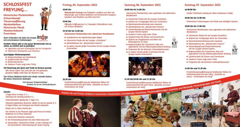 Auch dieses Jahr findet das traditionelle Schlossfest Wolfstein – ein dreitägiges Spektakel voller Nostalgie und mittelalterlichem Flair.