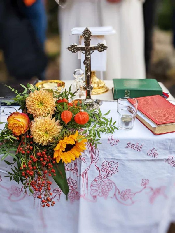 Die Messe wird von Pfarrer Schopf zelebriert. Der Weg zum Gipfel führt durch ursprüngliche Natur, vorbei an alten Bäumen und klaren Bächen – ein Erlebnis, das Körper und Seele gleichermaßen berührt.