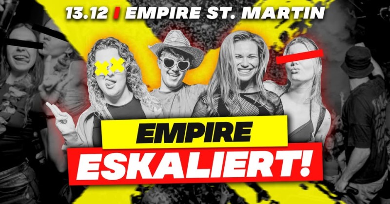 Empire eskaliert am 13. Dezember! Die Megaparty auf 3 Floors mit FIFA-Turnier, Beerpong, Knutsch-Contest, Donuts, Konfettibomben und Abrissgarantie – legendär wird’s im Empire St. Mar