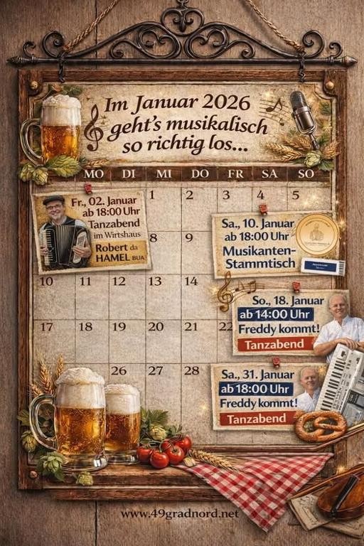 Mit Alleinunterhalter Freddy. Tanzen erlaubt. Tischreservierung: Tel. 09925-9037890.
