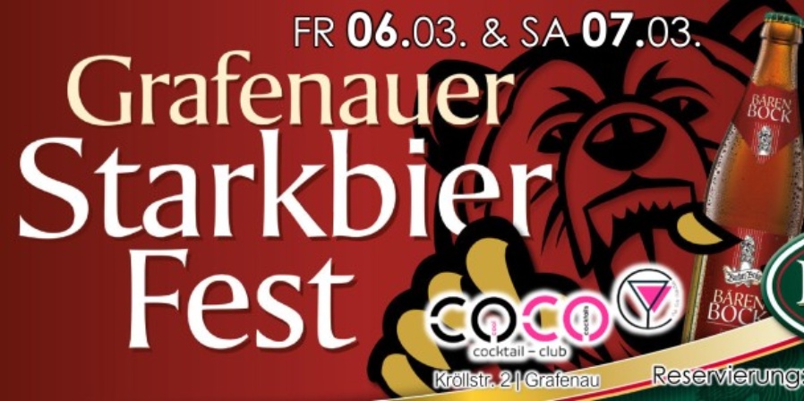 Ozapft is beim Grafenauer Starkbierfest 2026 im COCO. Am Freitag, 06. März, und Samstag, 07. März 2026, verwandelt sich der COCO Cocktail-Club & Tapas in Grafenau in ein bayerisches Prachtstück mit traditioneller Bierzelt-Dekoration und echter Festzelt-Stimmung.