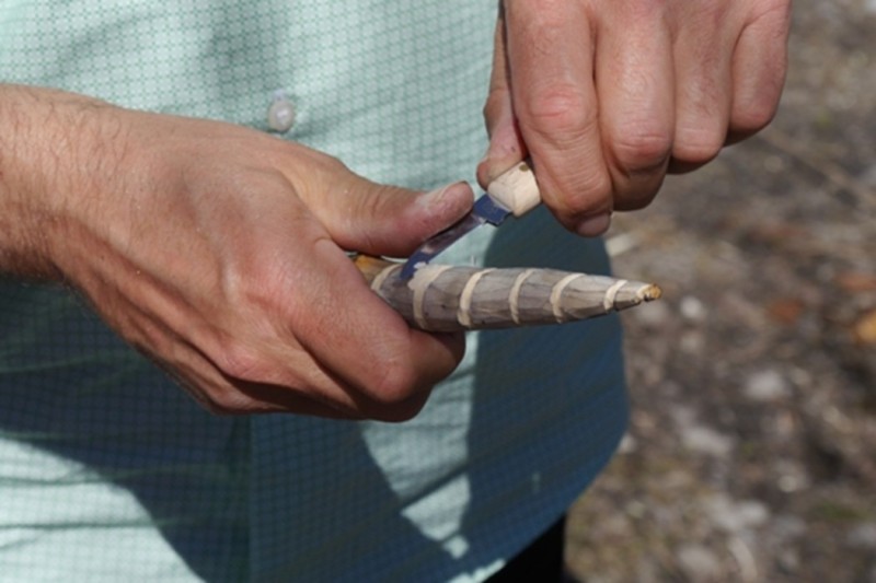 Ein Messersatz für viel Geld oder eine eigene Werkstatt brauchen wir nicht. Wir benötigen nur unsere beiden Hände, ein kleines Schnitzmesser und die Inspiration der wilden Wälder rund um das Wildniscamp im Nationalpark. Beim Herumstreifen im Wald finden sich überall Äste oder kleine Wurzelstücke, die die Fantasie anregen. An jedem beliebigen Ort können wir mit dem Schnitzen beginnen.