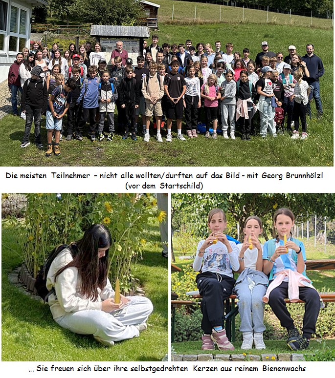 Das vollständige Ausfüllen des „Wissenstest’s“ wurde auf den Abend verschoben – bei Gruppen von 20 jungen Personen war an den jeweiligen Stationen natürlich nicht die Muse zum Rätselraten vorhanden. Weil sowohl Thomas auf der Aussichtsplattform als auch Georg beim Kerzendrehen mit vielen Fragen gelöchert wurden – und der Abschiedsgruß lautstark war - ist anzunehmen, dass dieser „Tag mit Bienen“ für alle interessant gewesen ist.