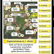 2. mittels eines Flyers, auf dem der Rundweg als Luftbild-Landkarte dargestellt ist – und darin die einzelnen Stationen und Wege mit QR-Code-Legenden versehen.