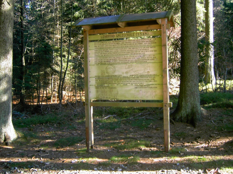 1,5 km langer Waldlehrpfad mit insges. 13 Info-Tafeln mit folgenden Themen: Waldschule, Baumartenverteilung, Baumarten, Altersklassenwald, Boden u. Pflanzen, Wasser, Gleichgewichte, Eingriffe der Menschen, Wurzeln, Bewirtschaftung des Waldes, Gestein-Boden, Spuren des Existenzkampfes.