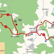 Ausgangspunkte: Ortsteile Dießenstein, "Zur Mauth" (Parkmöglichkeit) und Preying, Kirchplatz (Parkmöglichkeit)