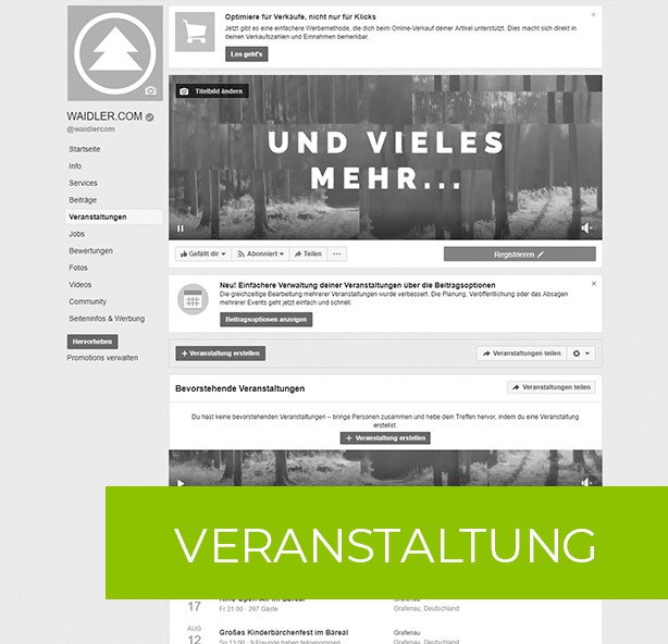 Wir posten Ihre Veranstaltung / Werbeinformationen auf unserer facebook-Seite von WAIDLER.COM, WAIDLER.JOBS oder einer unser weiteren Kanäle entweder als Post oder Story.